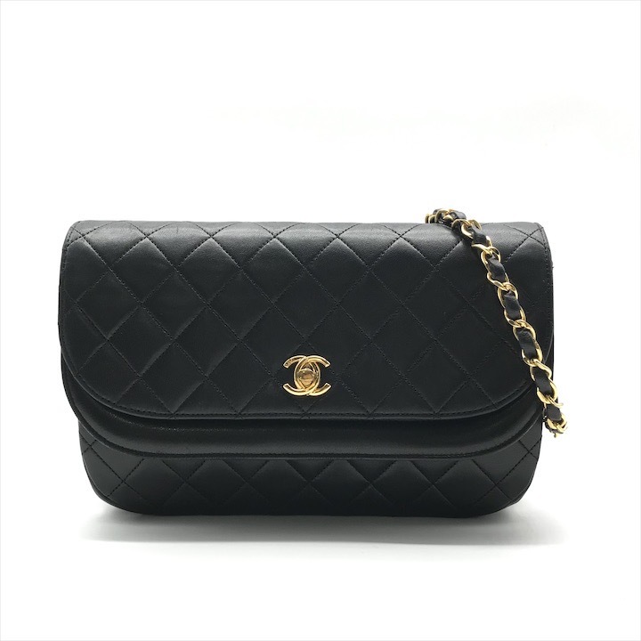- 美品 CHANEL シャネル ココマーク ラムスキン マトラッセ ターンロック Wフラップ チェーン ショルダー バッグ 鞄 ブラック a10409