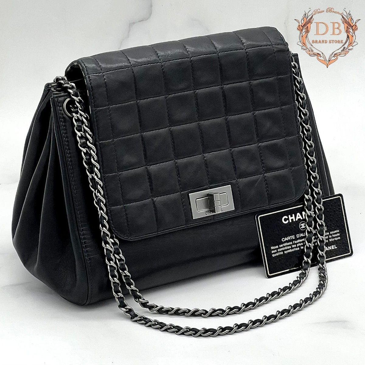 - 【Gカード付】 シャネル 2.55 チョコバー Wチェーンショルダー レザー CHANEL レディース バッグ ブラック ラム 鑑定済み シルバー金具