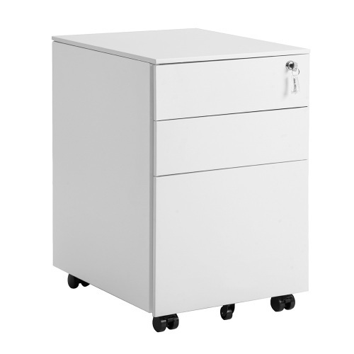 - 】デスクワゴン サイドワゴン ラック 完成品 鍵付き キャスター付き 脇机 オフィス 収納 A4 キャビネット 脇机 引き出し 鍵 KU411