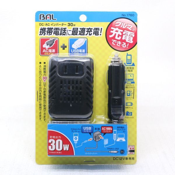 - 011d 未開封 BAL 大橋産業 DC/AC インバーター 30W No.1760 車で家庭用コンセントが使える カーコンセント