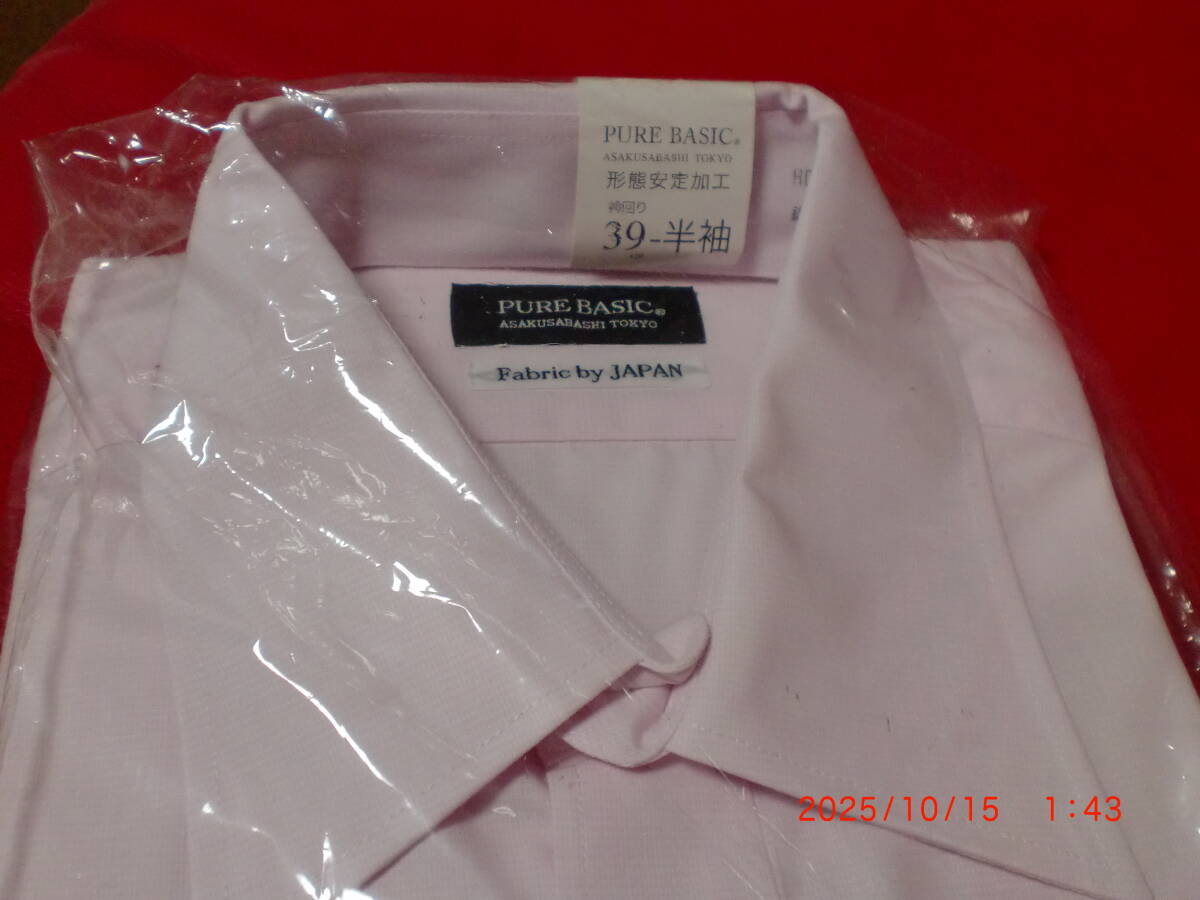 - 39-半袖シャツ ホワイトピンク 形態安定 消臭加工 M