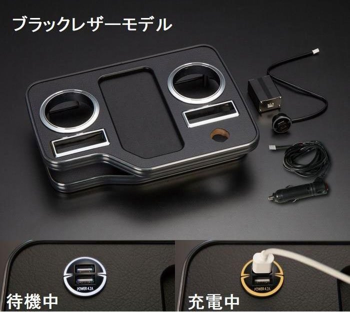 - リム フロントセンタードリンクホルダーV2 USBポート付 ブラックレザー 1set ハイエース 200系 2004年8月~ 2WD/4WD 標準/ワイドボディ