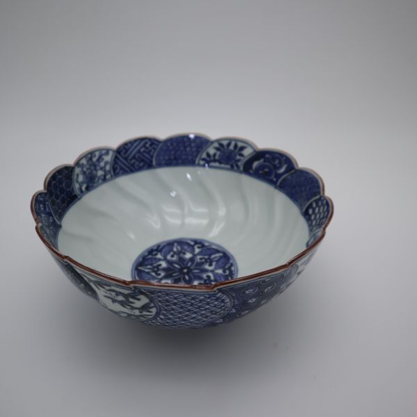 - Cj7052 五良太甫 呉祥瑞造 染付 波縁 大鉢/深鉢 (約)直径21.5cm深さ10cm 中国古玩 古美術