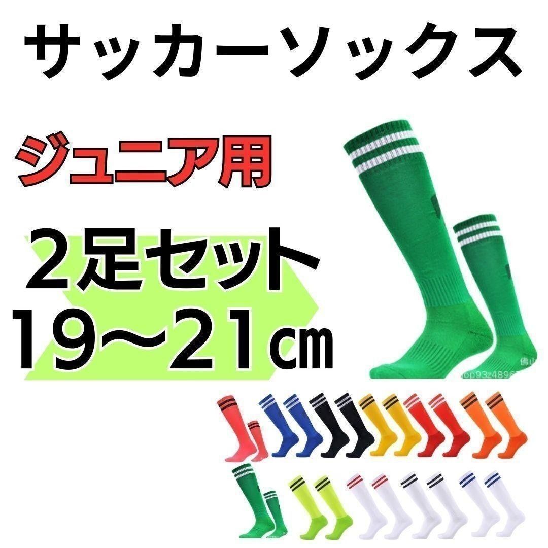 > サッカーソックス 緑 × 白 19~21 【2足セット】高学年 ジュニア フットサル カラーソックス サッカー 部活