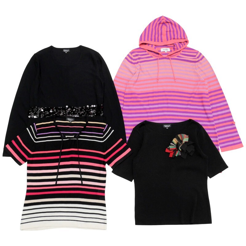 > TJ5141#4点セット*ソニアリキエル*SONIA RYKIEL*ニット*クルーネック*パーカー*半袖*プルオーバー*ボーダー*スパンコール装飾*サイズ40