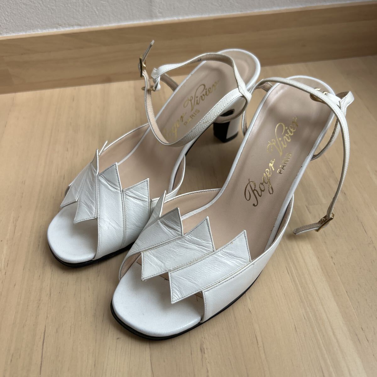 - ロジェ・ヴィヴィエサイズ23 センチ 5 2/1 メイドインJAPAN サンダル レザー ホワイト 靴 ヒール パンプス ストラップサンダル