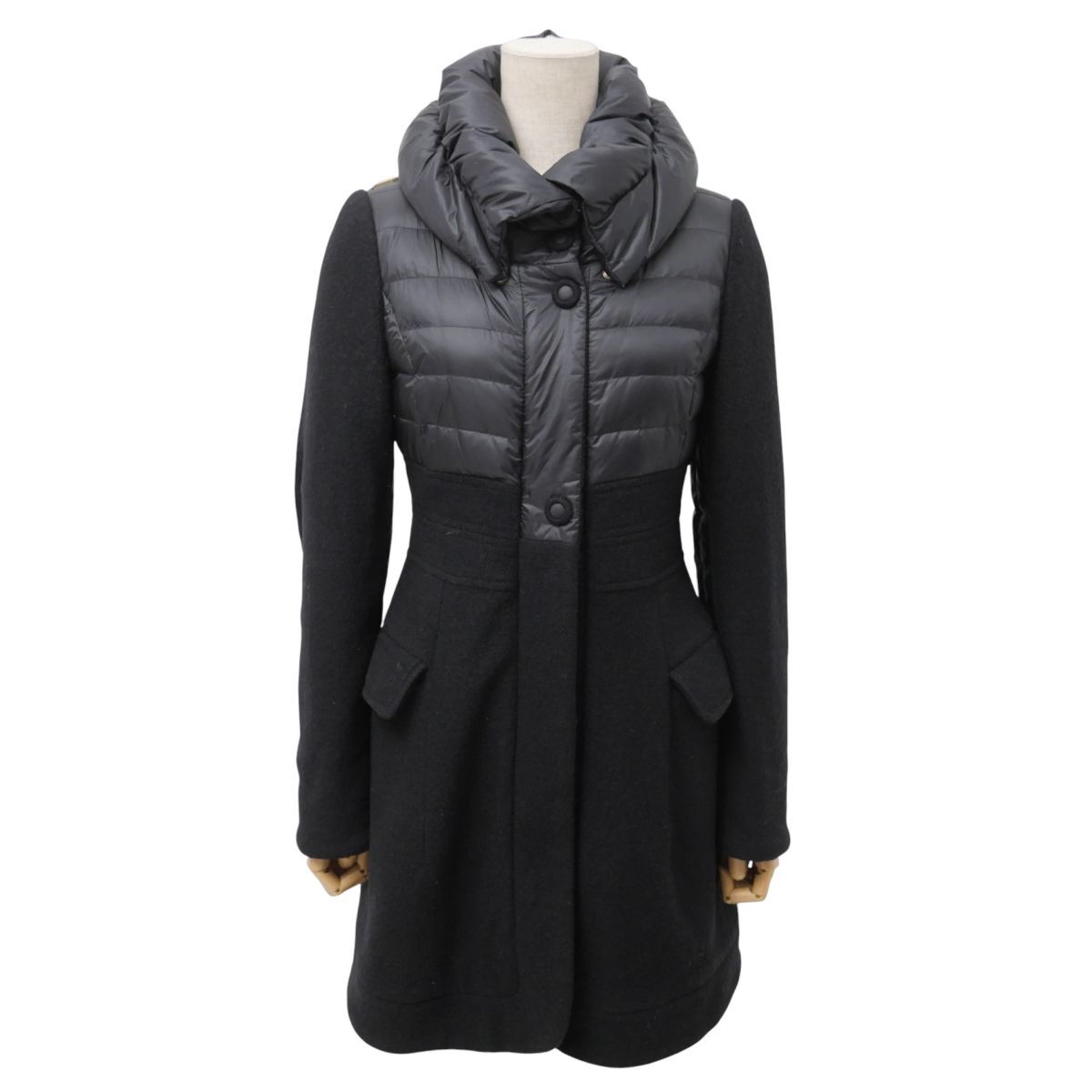 > MI1842☆チネリステューディオ C STUDIO ダウンコート ハーフコート ウール×ナイロン 切替 ボリュームネック ブラック サイズ38