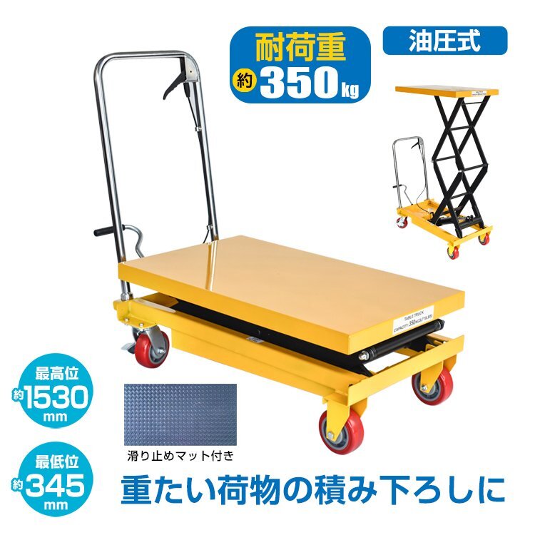 - リフトテーブル 油圧式 耐荷重350kg 台車 油圧式昇降台車 リフトアップ テーブルカート ハンドリフター キャスター 昇降台 リフト sg122