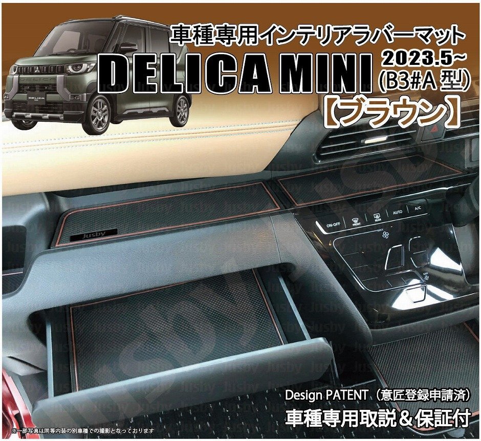 - 三菱 デリカミニ DELICAMINI インテリアラバーマット(ブラウン/茶色) 内装用ドアポケットマット フロアマット 内装パーツ アクセサリー