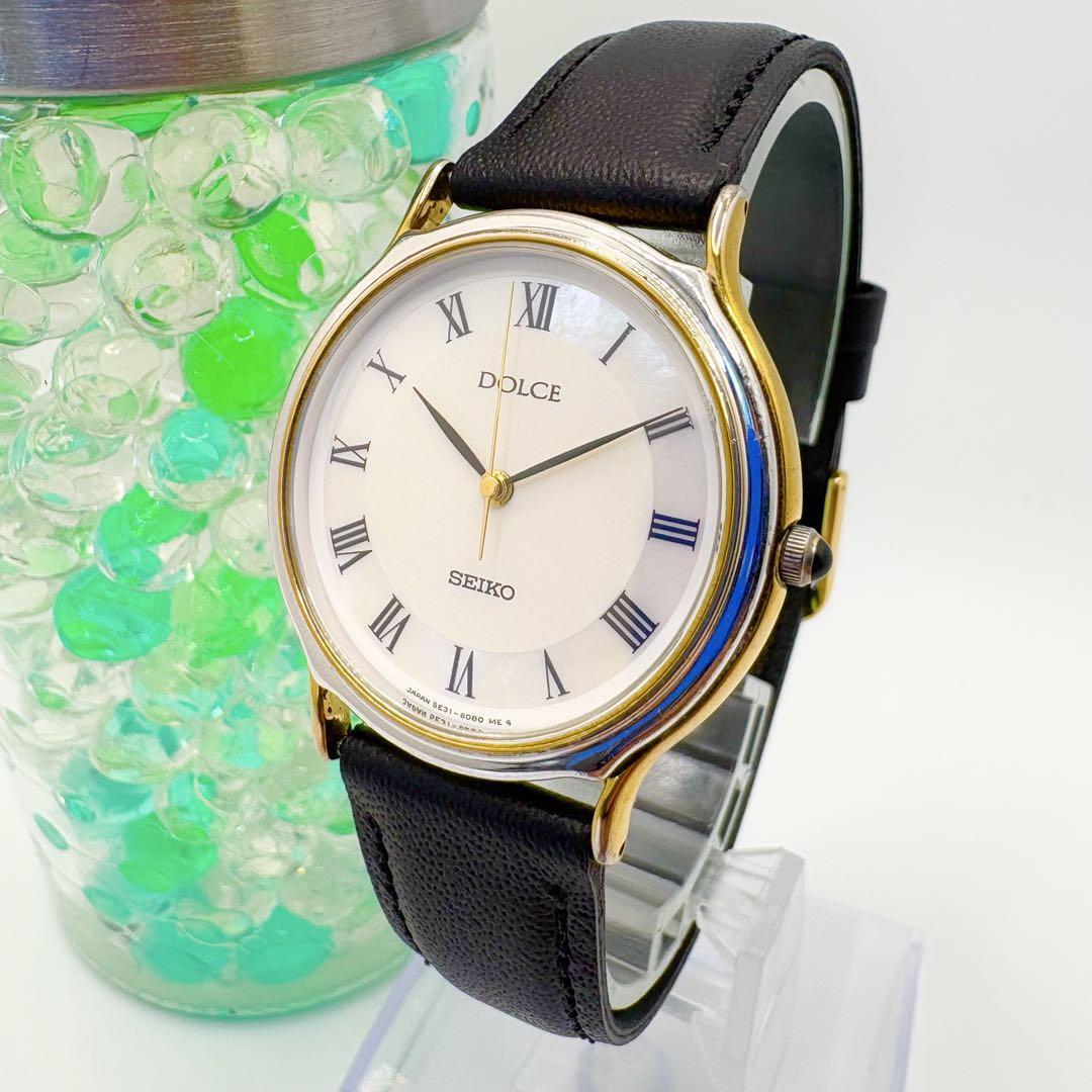- 新品電池 新品ベルト 稼働 セイコー SEIKO DOLCE ドルチェ シェル文字盤 腕時計 ラウンド クォーツ アナログ ドレス メンズ レディース