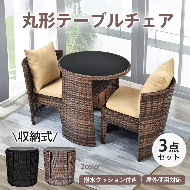 - ガーデン テーブル チェア セット 3点 ガーデンファニチャー ガーデンテーブル チェア ラタン調 2人掛け 丸形 椅子 屋外 od645