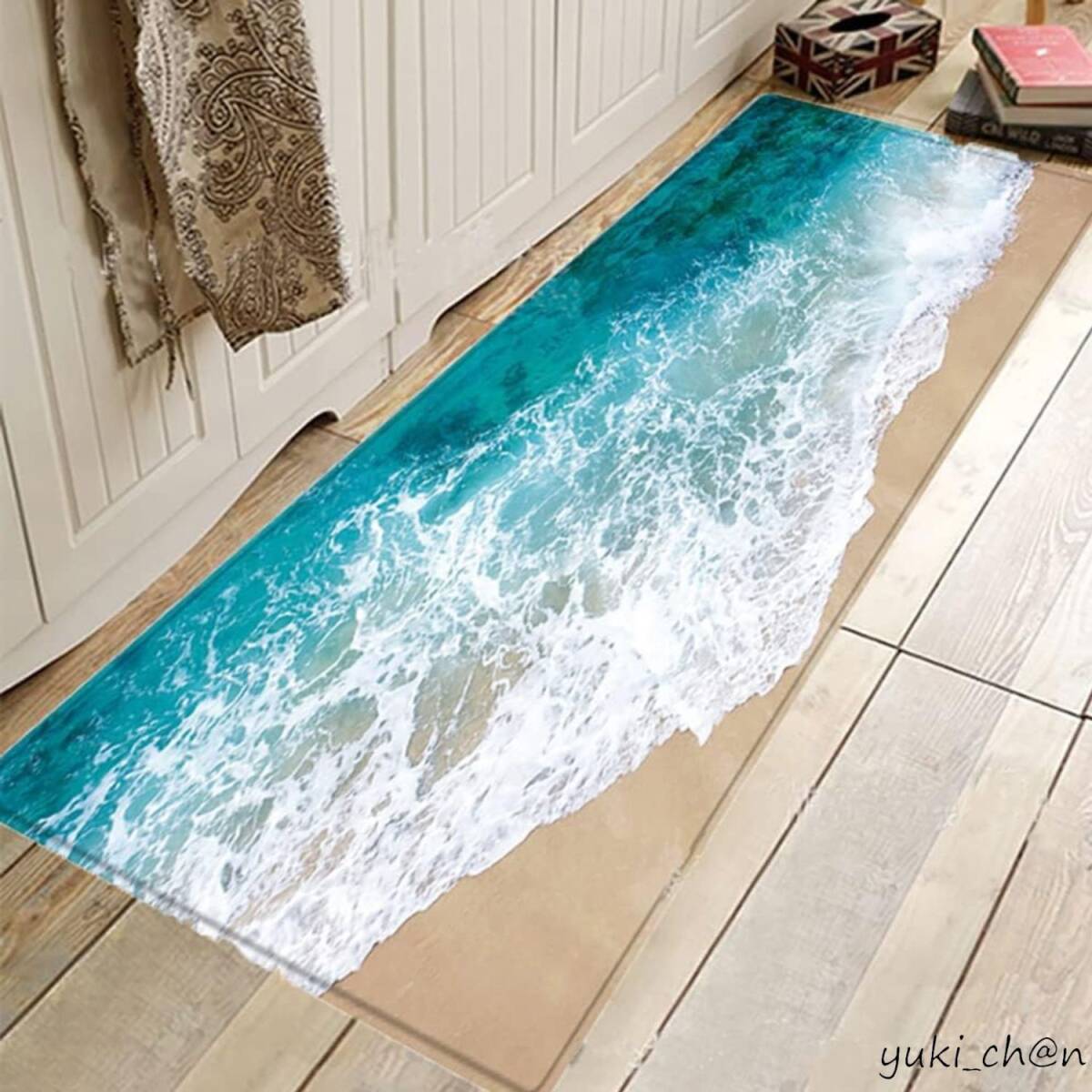 - キッチンマット ラグ 玄関マット 60cm×180cm 滑り止め付き マリン サーフ 海辺 海 インテリア 手洗い可能 おしゃれ