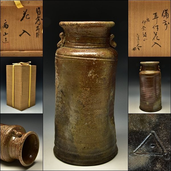 - SP6311 堀内宗完 書付 備前 耳付 花入 銘あり 花器 花生 花瓶 壺 共箱