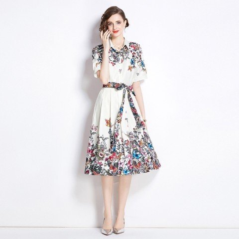 - 蝶々柄プリントドレスワンピース 3L 花柄