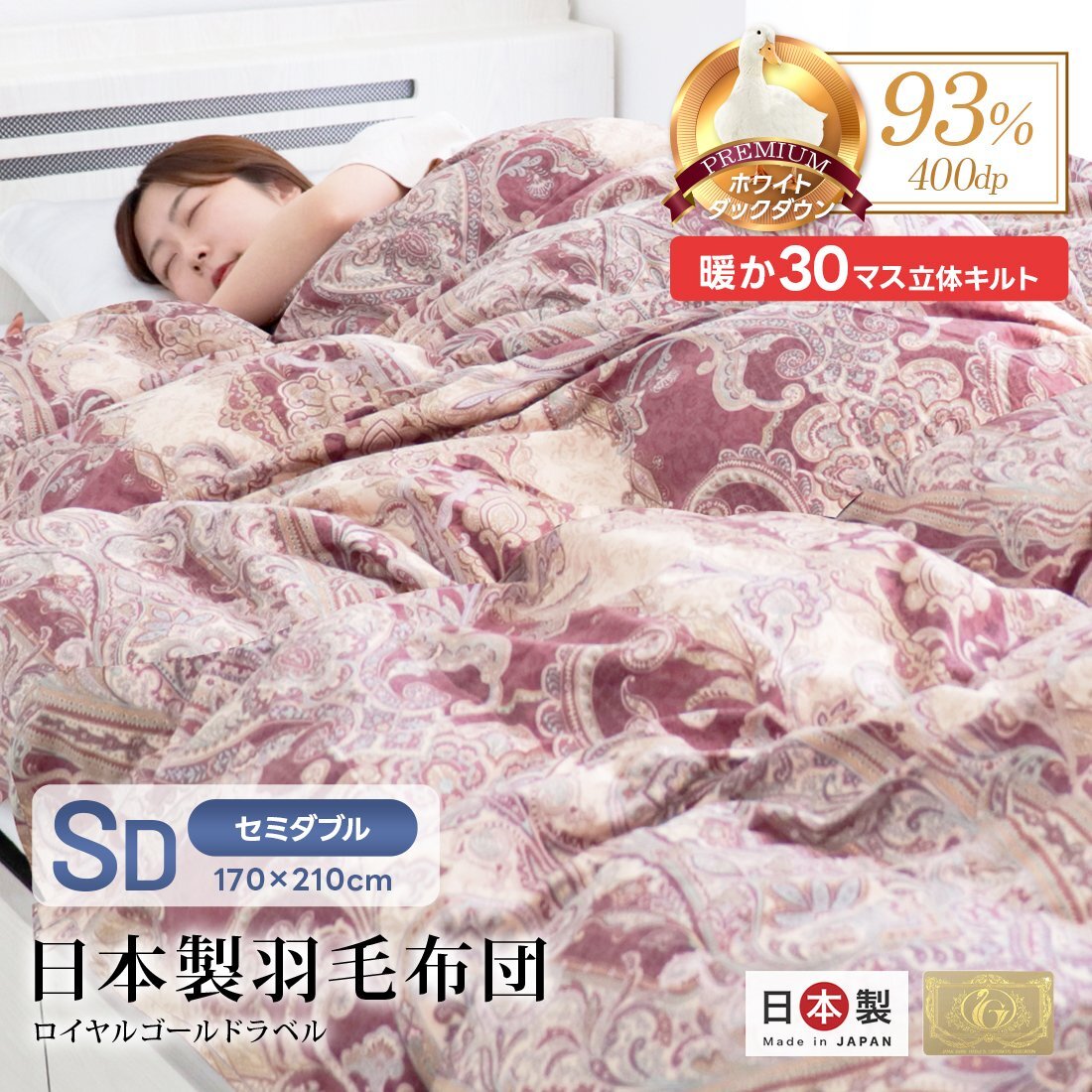 - 羽毛布団 掛け布団 セミダブル 冬 暖かい 日本製 ホワイトダックダウン93% ロイヤルゴールドラベル 冬用 抗菌 防臭 防ダニ 羽毛 掛布団