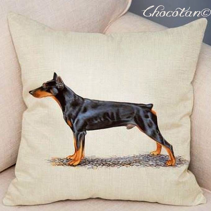 - 【送料無料】ミニピン 犬種③ ドーベルマン コットンリネン 45x45cm クッションカバー【新品】