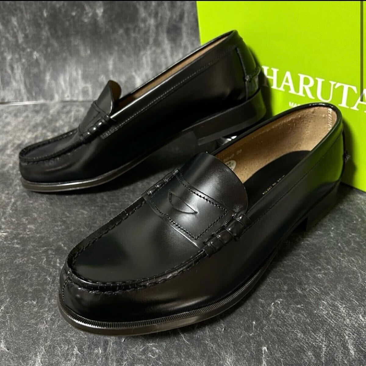 > 【未使用/大きいサイズ】 ¥9130- HARUTA ハルタ #3048 コインローファー ブラック レディース size25 (ゆったり3E) *1A