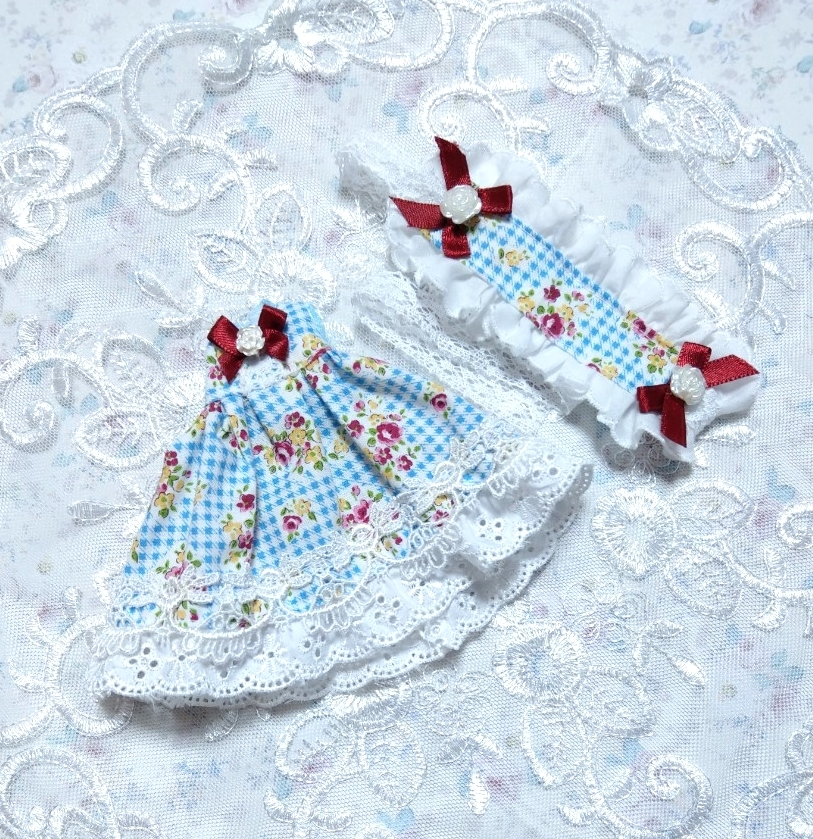 - *1/12サイズ ドール お洋服 OF アウトフィット ワンピース ドレス セット*【Flower Blueplaid】