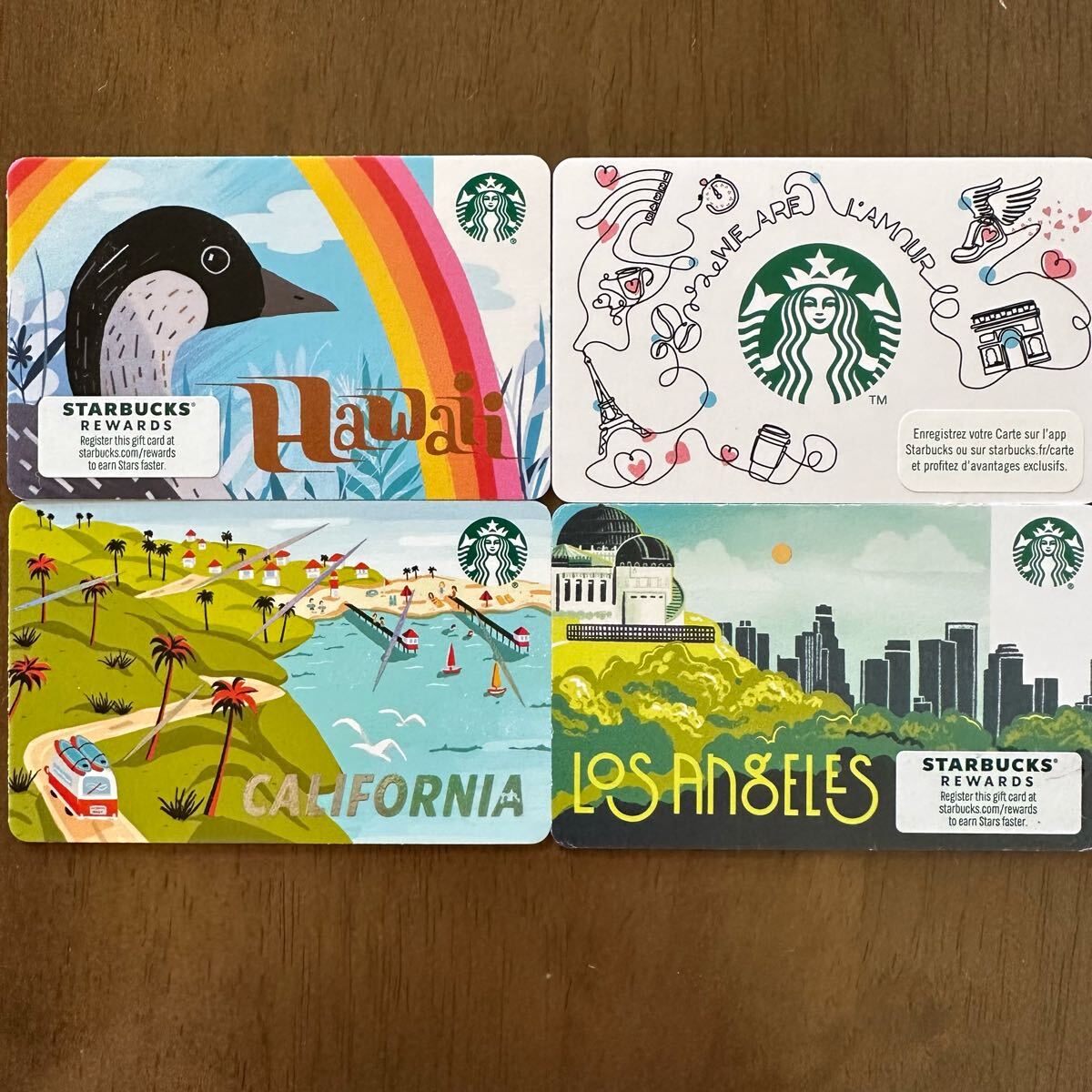 - スターバックスカード 北米 アメリカ ハワイ フランス パリ カリフォルニア ロサンゼルス 4枚 ロゴ スタバカード 海外スタバ コレクション