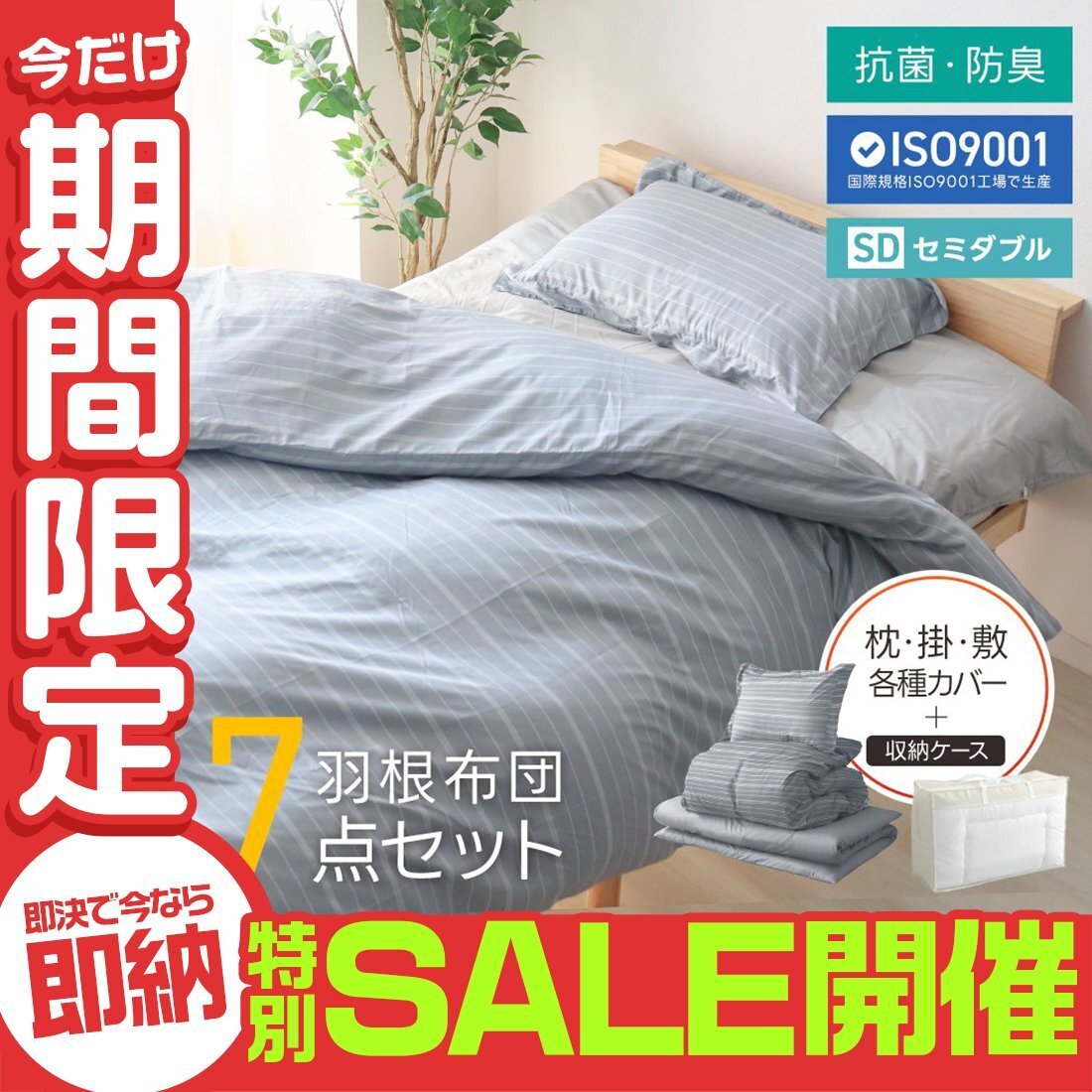 > 【数量限定セール】布団セット セミダブル 7点 暖かい 洗える 安い 羽根布団 枕 掛布団 敷布団 カバー 来客用 抗菌 防臭 組布団 布団収納袋