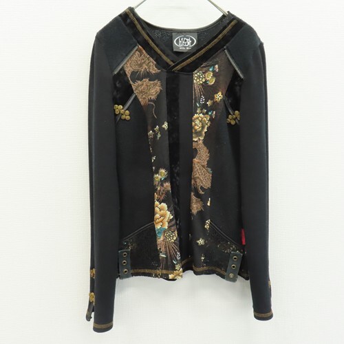 ◎商品名(タイトル):OZZON オッズオン ヒコゾー ニット プルオーバー カットソー デザイン 花柄 龍 和柄 [x965359]◎ブランド名:OZZON オッズオン◎アイテム名:ニット プルオーバー カットソー◎サイズ:-◎性別:レディース◎カラー:黒系 マルチ◎素材:表記なし◎実寸サイズ:肩幅約 35cm・袖丈約 60cm・着丈約 53cm・胸囲約 39.5cm×2◎商品コメント:★当店の商品はすべてリユースアイテムとなります。特質上、些細なダメージは記載しておりませんので着用に問題のない使用感、着古した雰囲気などはご了承くださいませ。◎コンディションレベル:やや傷や汚れあり◎コンディション備考:各所に毛羽立ちがございます。(画像4参照)キーワード/アクイール/古着/used/ビンテージ/ヴィンテージ/レトロ/昭和/オッズオンジャパン/OZZONJAPAN/ブラック系