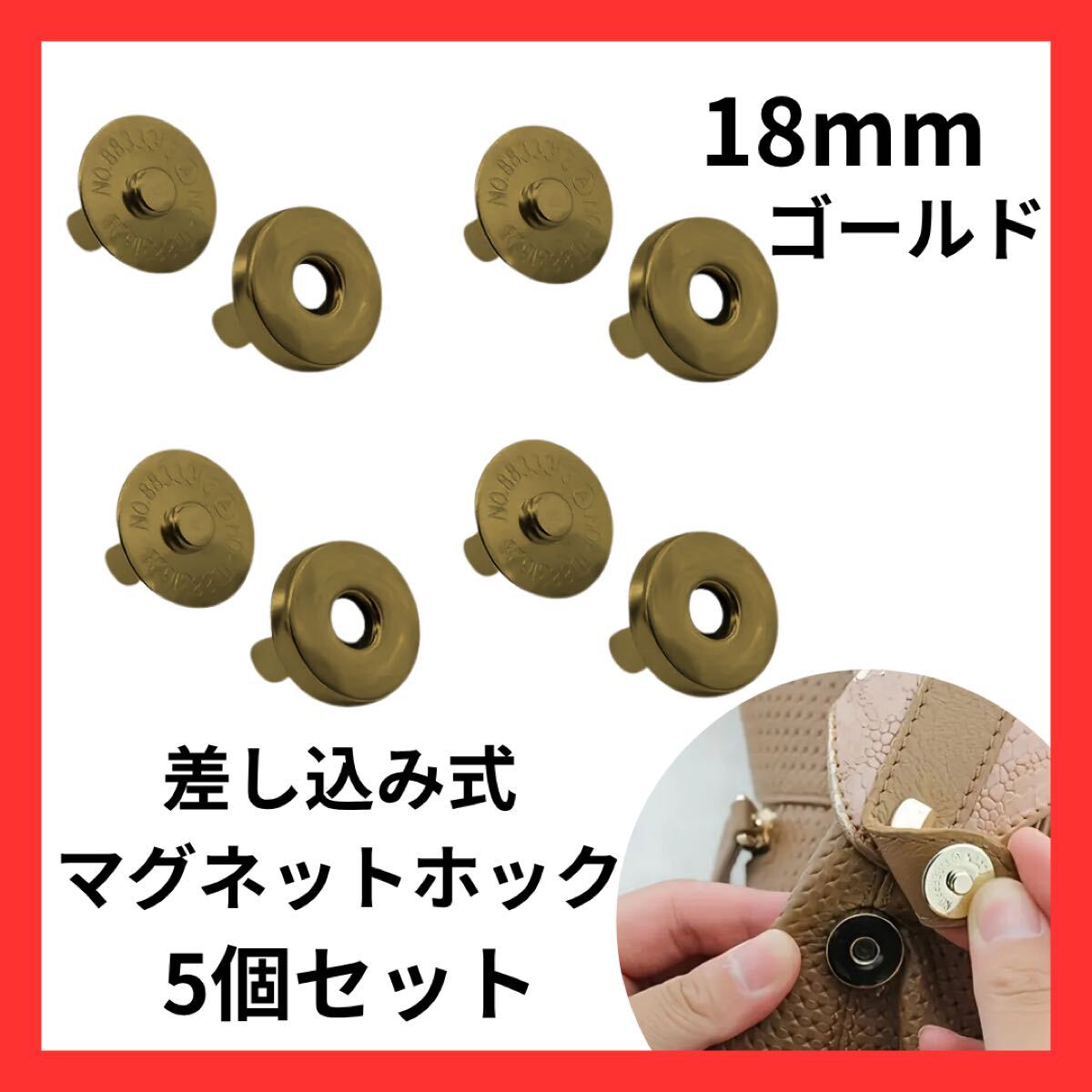 - 差込式マグネットホック ゴールド 18mm ボタン 手芸 5個セット ハンドメイド