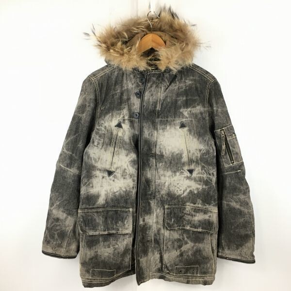 > VENTINA ダメージ加工/モッズコート メンズM 黒×グレー/マーブル模様 アウター/ジャケット 管NO.TA21-14