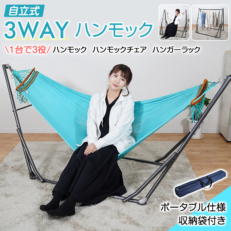 - ハンモックチェア 自立式 3way ハンモック 軽量 折りたたみ ハンガーラック リラックス チェア キャンプ ベッド 昼寝 室内 屋外 庭 od520