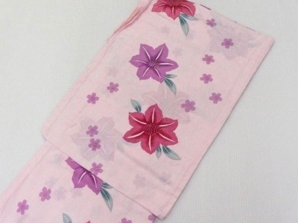 - 女性用 浴衣 単品 ゆかた 桜色に百合 仕立上 身長155-168cm 510