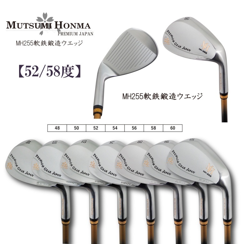 > ☆②2本SET【52/58度】ムツミ ホンマ 【MUTSUMI HONMA】 MH255軟鉄鍛造ウエッジ オリジナルカーボンシャフト 本間 睦【日本正規品】
