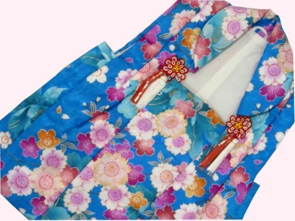 > 七五三 被布コート 三才 洗える素材 青地に桜 紫 白 014