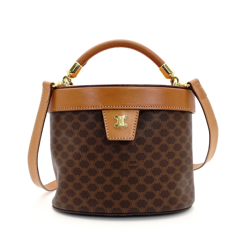 > セリーヌ CELINE バニティバッグ マカダム ハンドバッグ 2way PVC ブラウン ヴィンテージ 7-7-818