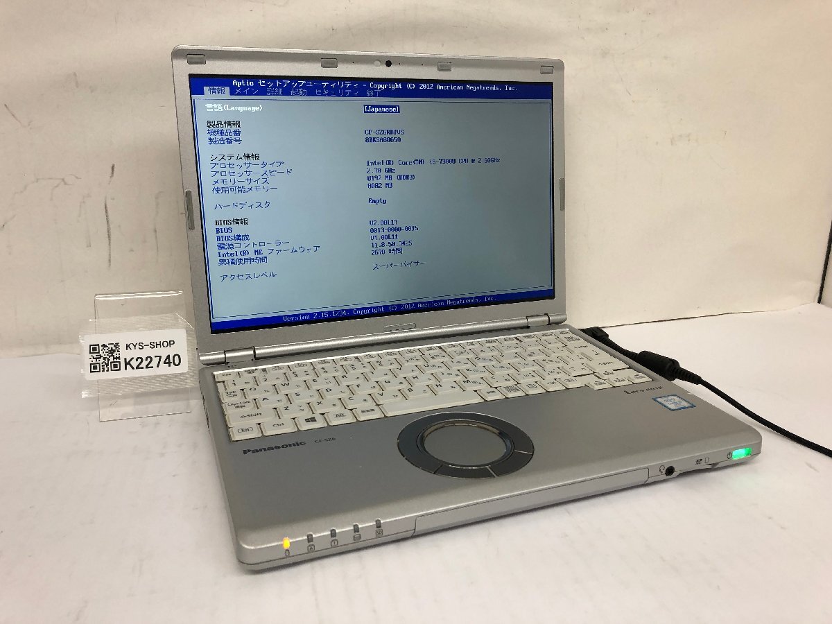 > ジャンク/ Panasonic CF-SZ6RDYVS Intel Core i5-7300U メモリ8.19GB ストレージ無し 【K22740】