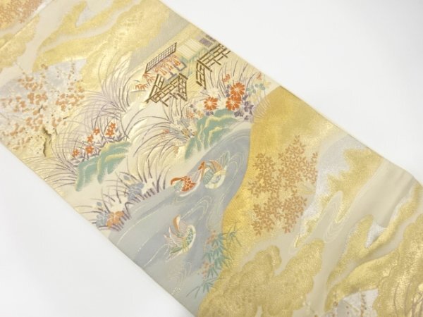 > ys7549657; 宗sou 鴛鴦に屋敷風景模様織り出し袋帯(材料)【アンティーク】【着】