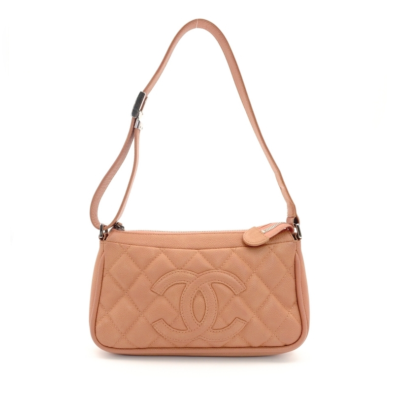> シャネル CHANEL マトラッセ ショルダーバッグ コーラルピンク キャビアスキン レザー CCロゴ 7-9-349