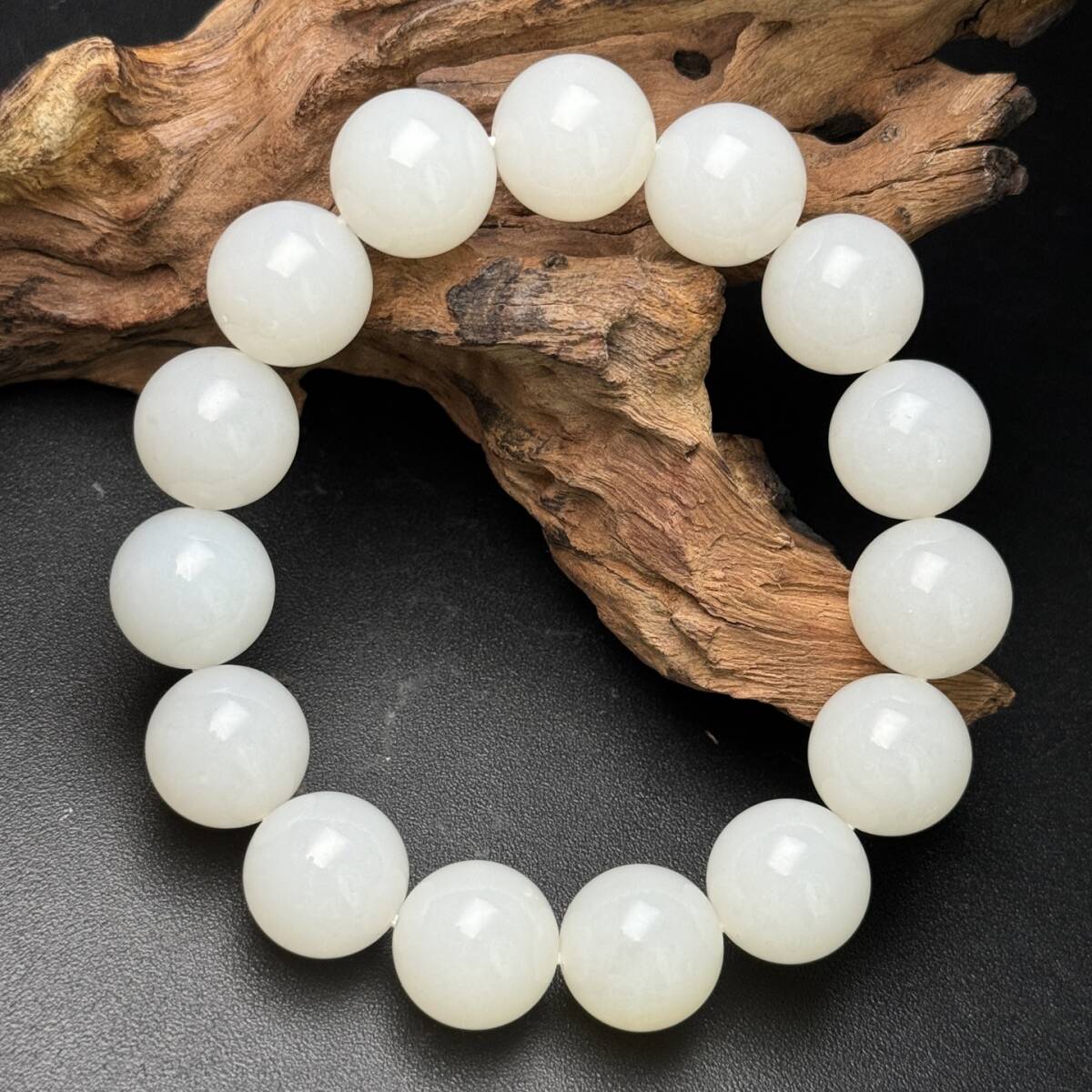 - ▽鴻▽ 清朝時代 和田玉 白玉彫 手串 時代物 中国古美術 骨董品