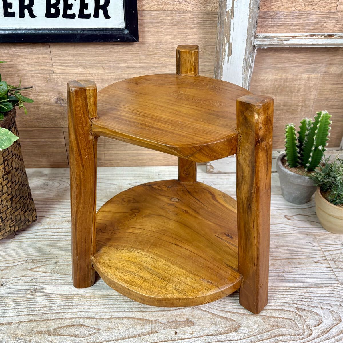 - 送料無料オールドチーク天然無垢材丸二段ラック(32㎝×34㎝)天然木ナチュラルウッド置台、ミニテーブル、シェルフ、花台、飾り台