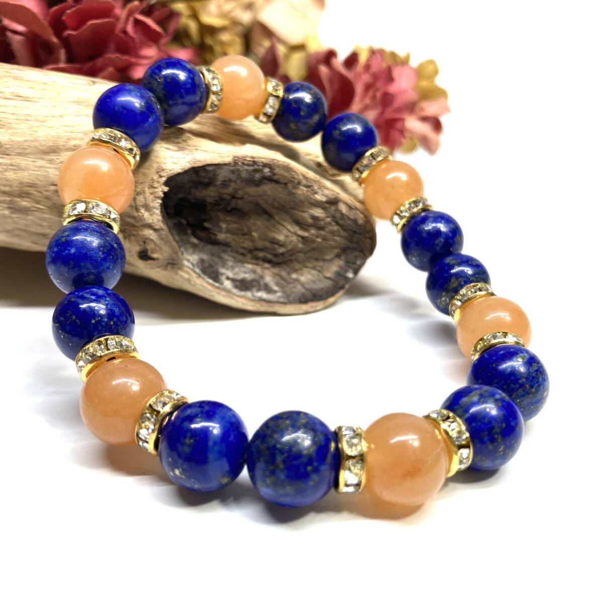 > ラピスラズリ&レッドアベンチュリン パワーストーン ブレスレット 天然石ブレス (ゴールド) 10mm メンズ・レディース 癒し ☆