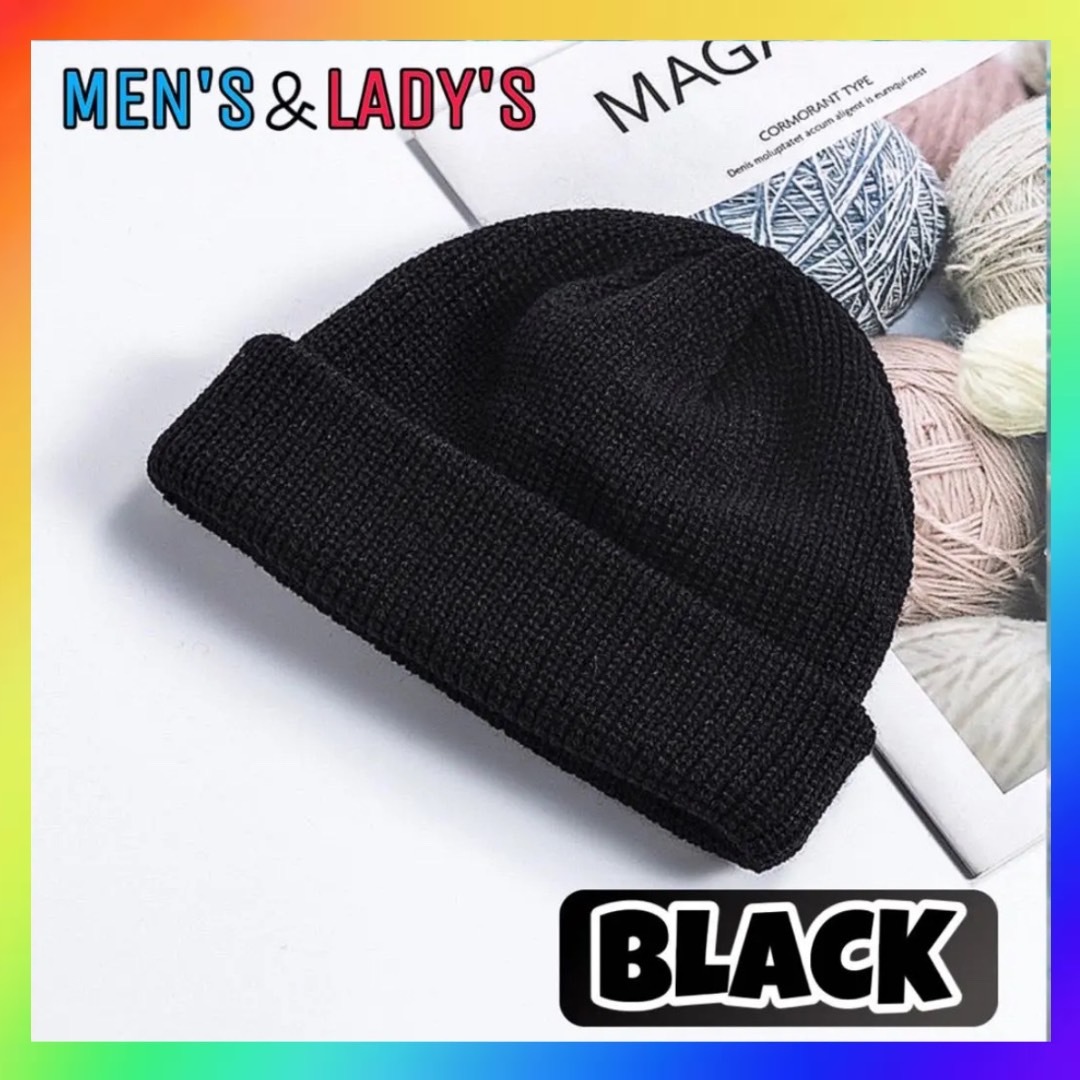 - ニット帽 男女兼用 浅め ニットキャップ ビーニー 黒 ブラック おしゃれ 防寒