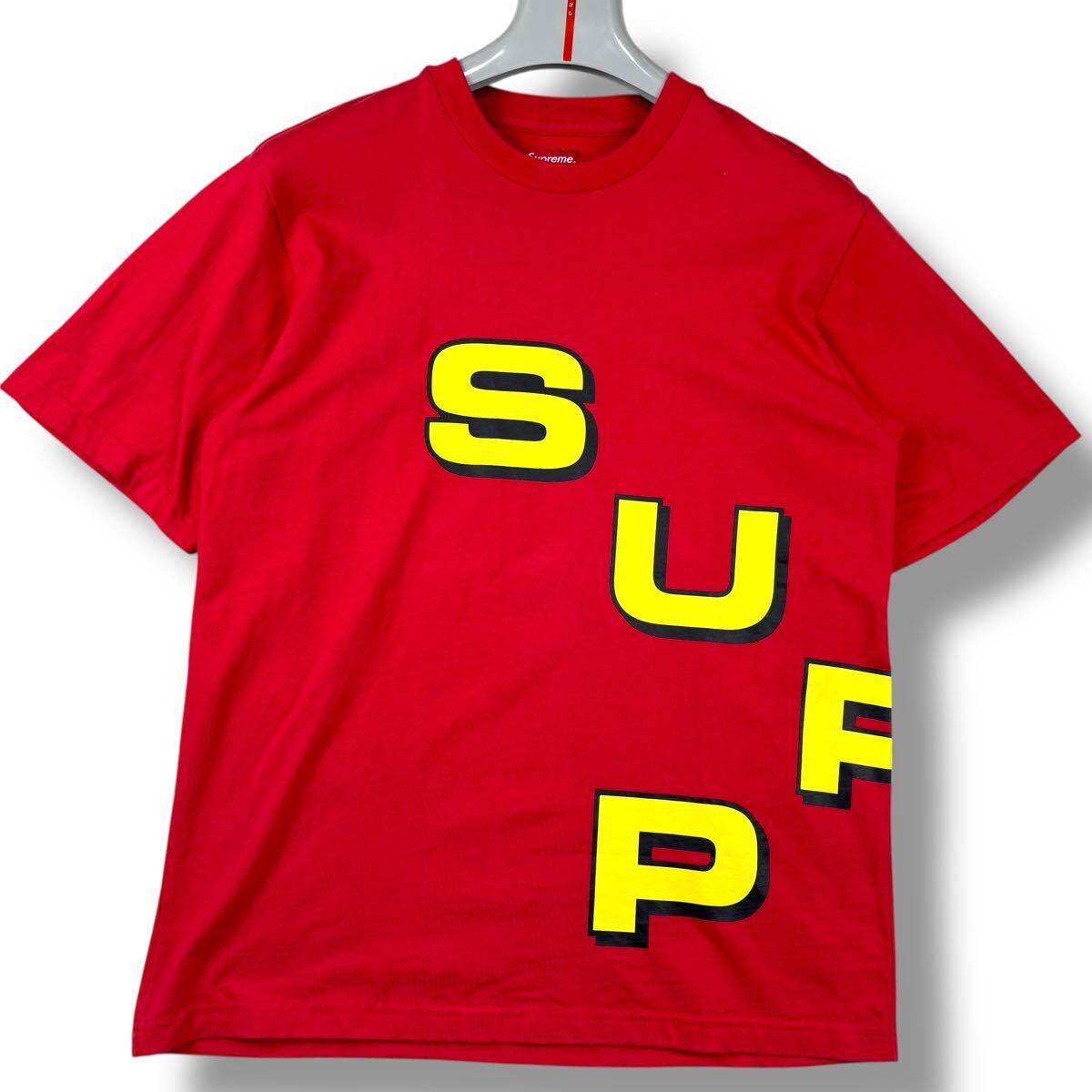 - 1円 美品 M~L シュプリーム supreme 半袖Tシャツ カットソー Split Tee スプリット デカロゴプリント メンズ S レッド