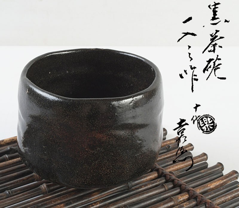 - 茶道具 四代 楽吉左衛門 一入作 黒楽茶碗 仕覆付 十代 旦入極め箱 IBVX