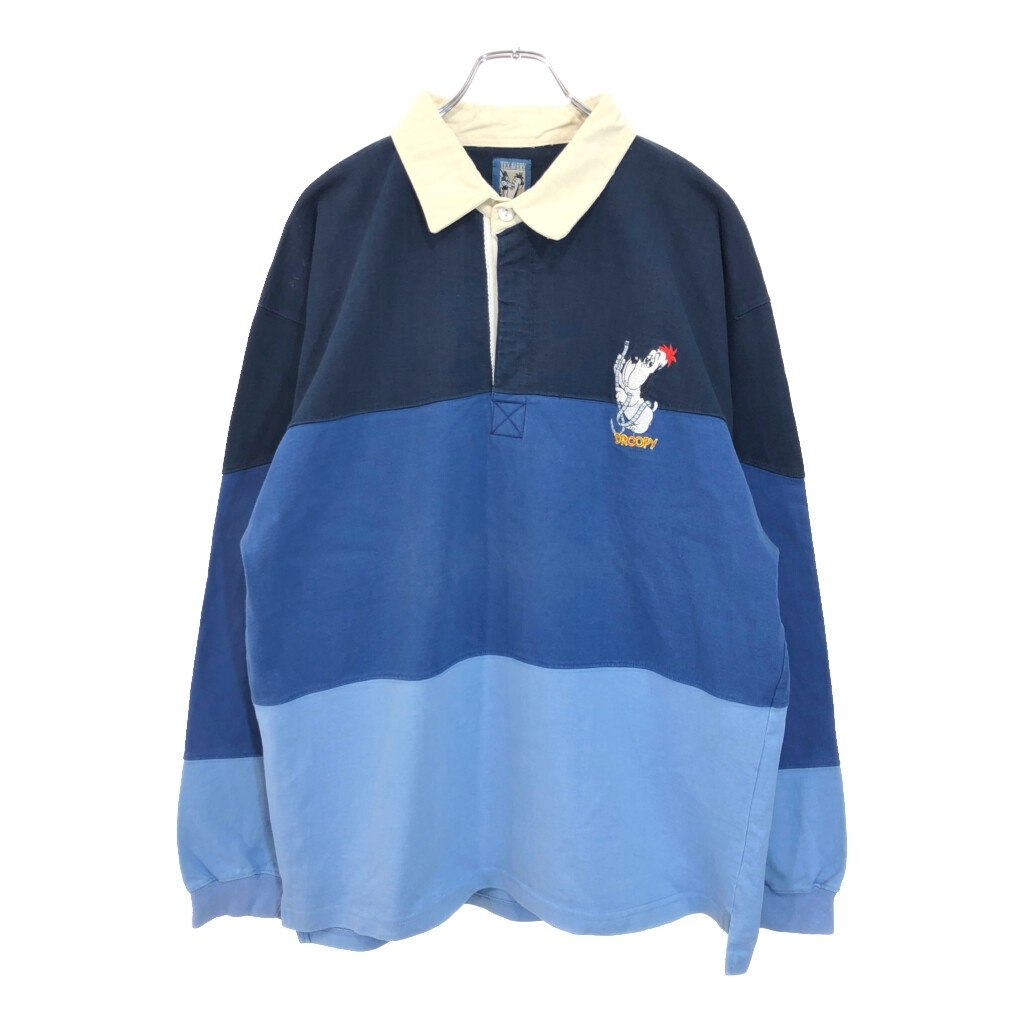 - Droopy ドルーピー ラガーシャツ キャラクター ボーダー ブルー(メンズ XL)中古 古着 V0940