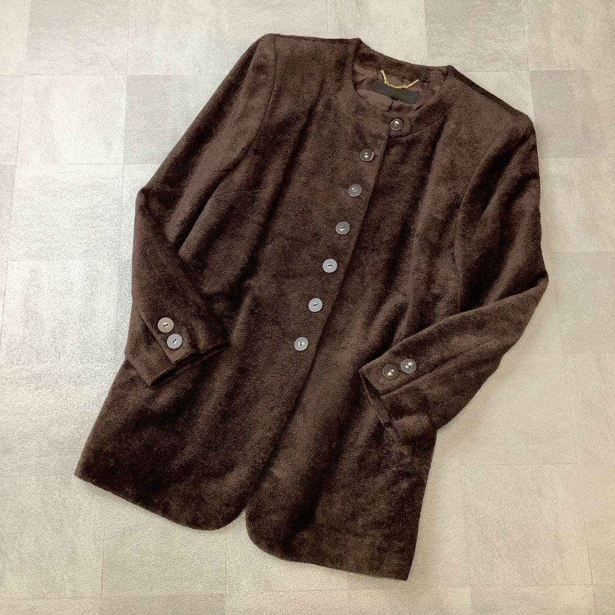 - 美品 Leilian レリアン ノーカラー デザインジャケット レディース 9号 M ブラウン