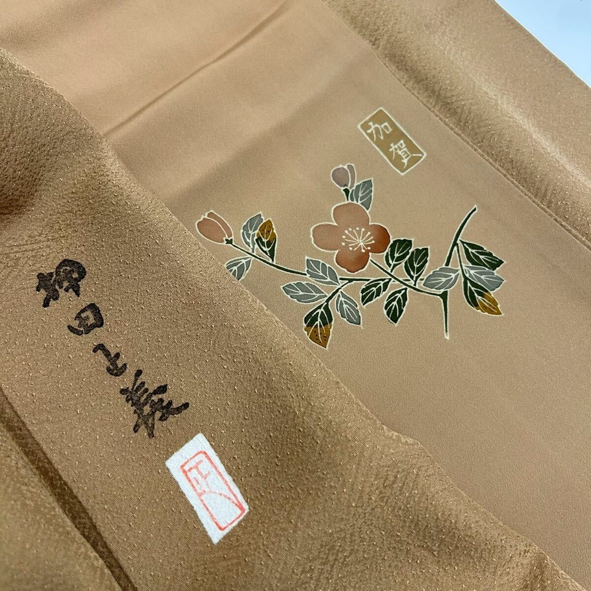 - 本加賀友禅作家 押田正義 色無地 美しい地紋 着物 正絹 一つ紋 着物 正絹 W-4872