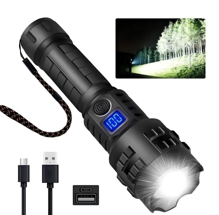 - 人気品超高輝度ルーメン懐中電灯フラッシュライト大液晶画面ledライトデジタル残量表示 Type-C USB充電式 超長遠射 防水防災 登山 夜釣り