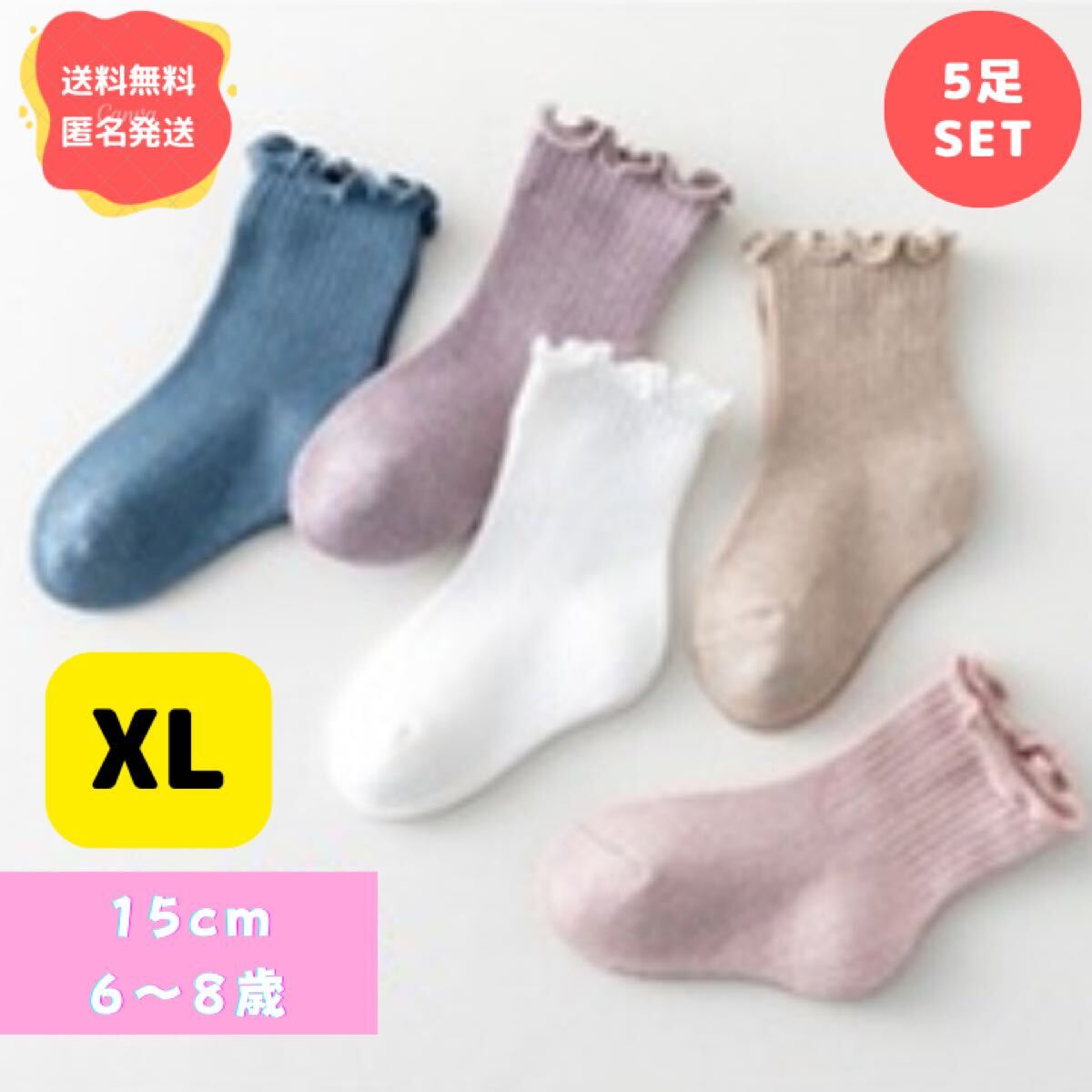 - 【5色セット】子供用靴下 子供用ソックス キッズ用ソックス フリル 通学 かわいい 通学 XLサイズ