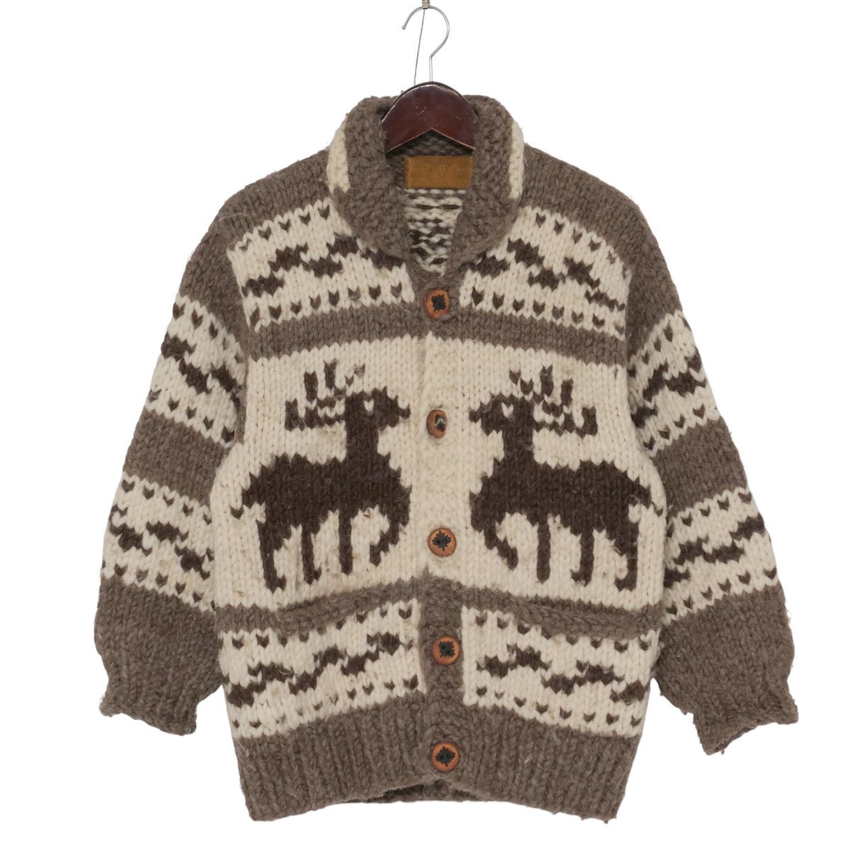 - TI8014▽カナダ製*メンズ*カウチンセーター*ローゲージ*トナカイ柄*ウッドボタン*ニットブルゾン*ブラウン×アイボリー系