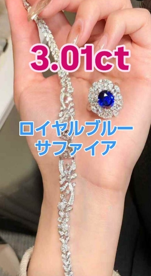 > 新作3.01ct ロイヤルブルー サファイア 18K 3WAY仕様ジュエリー リング ペンダント ブレスレット/ AIGD新品未使用