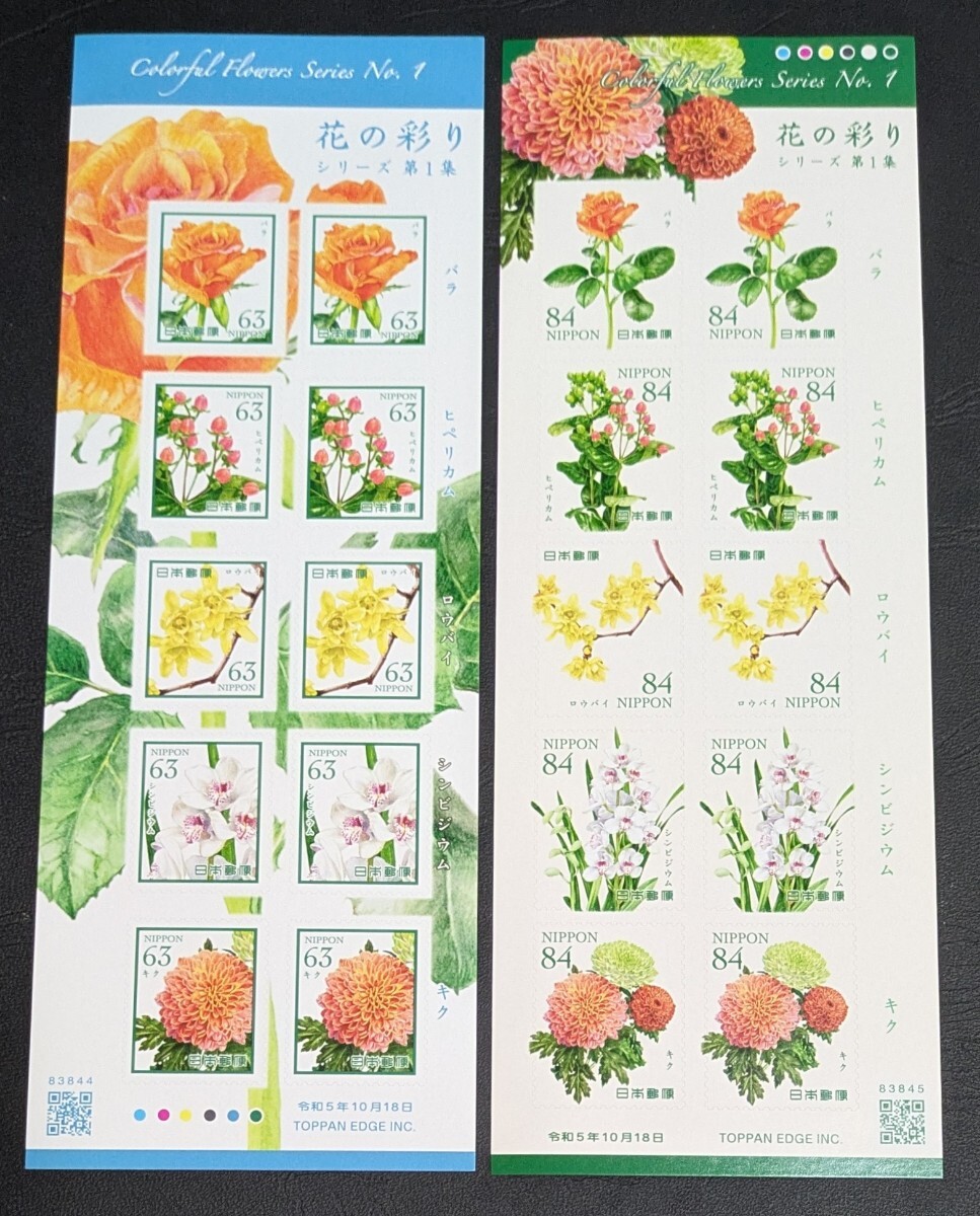- 2023年・特殊切手-花の彩りシリーズ第1集シート(解説プリント付)