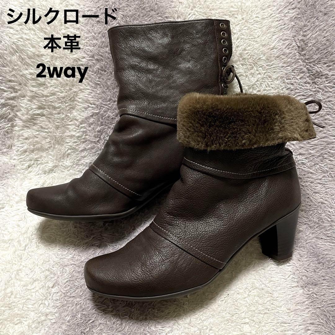 - si34 シルクロード/本革/レザーブーツ/レースアップボアブーツ/幅広3E